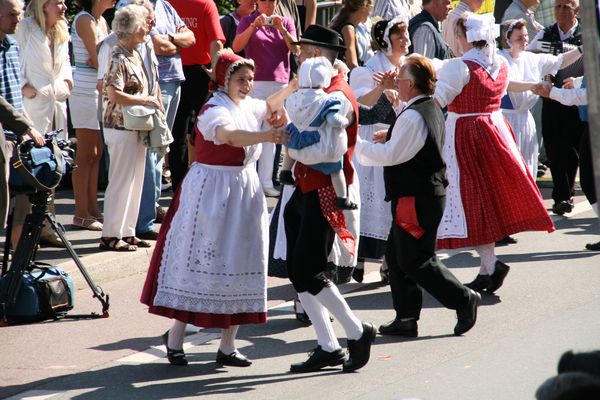 Der fröhliche Kreis während des Festumzugs bei der Europeade 2009: